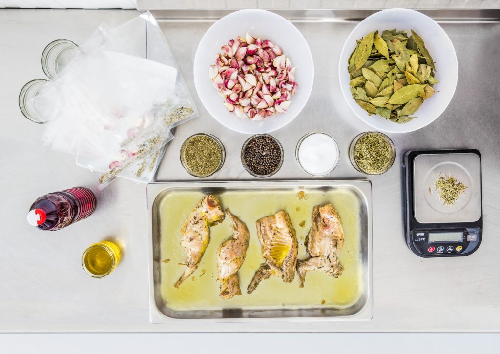 Perdiz escabechada, Perdiz escabechada de caza, Codorniz escabechada, Conejo escabechado, Conejo escabechado, deshuesado, Pollo escabechado, Ternasco de Aragón, escabechado, Paté 100% hígado de conejo,Lotes y Packs.